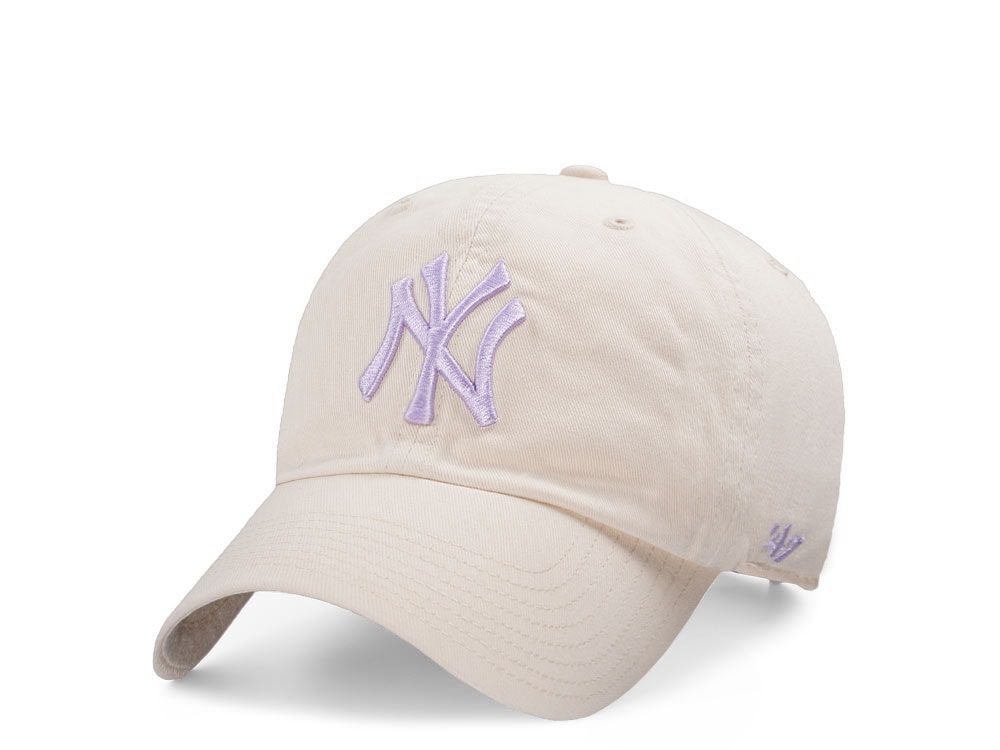 47Brand New York Yankees Natural Purple Logo Clean up Strapback Cap