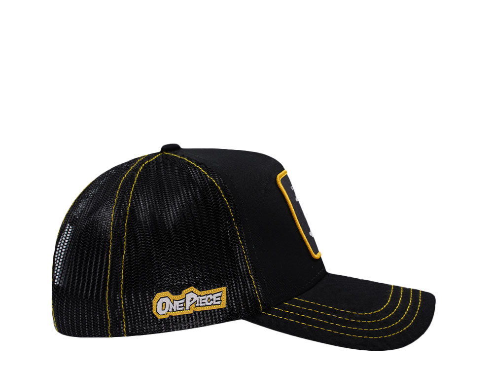 Capslab One Piece Straw Hat Crew Flag Black Trucker Snapback Cap
