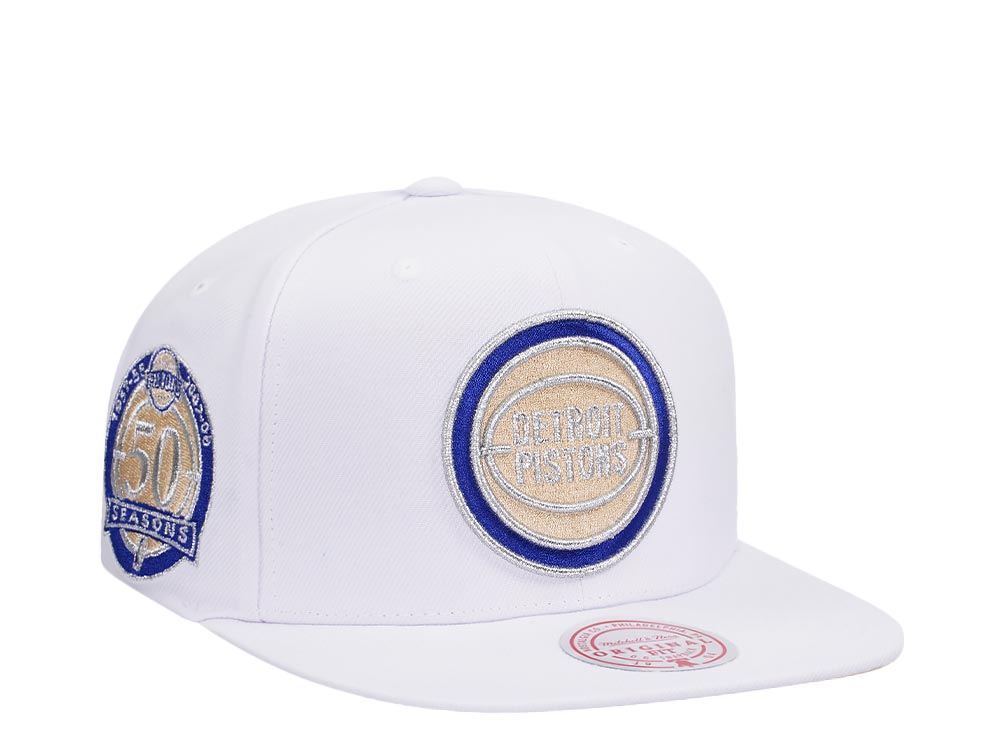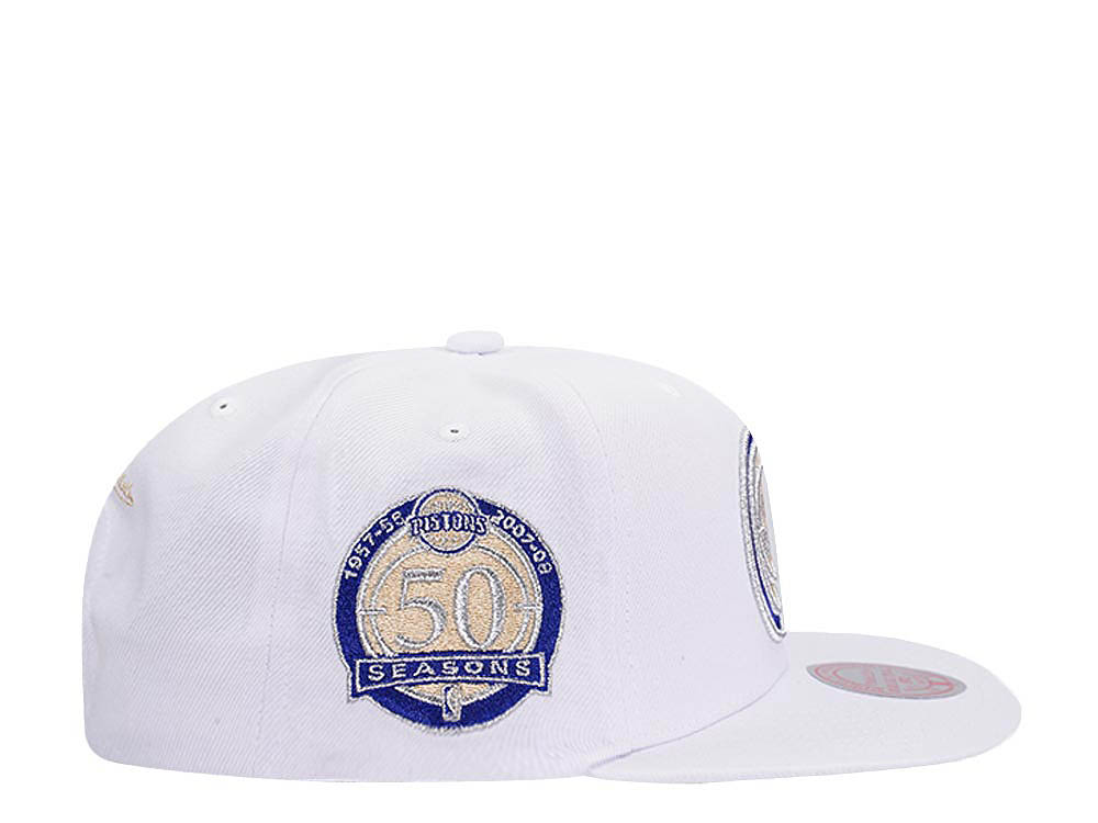 Mitchell & Ness Detroit Pistons 50th Anniversary Winter White Hardwood Classic Snapback Cap