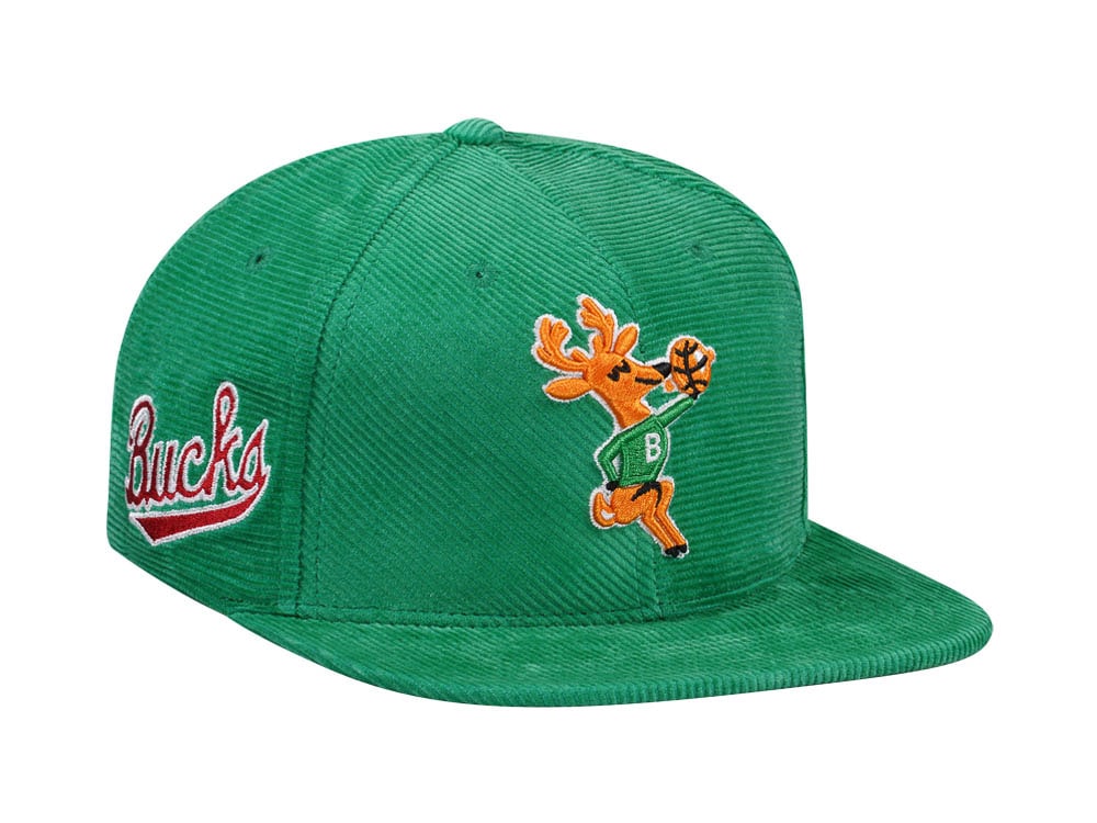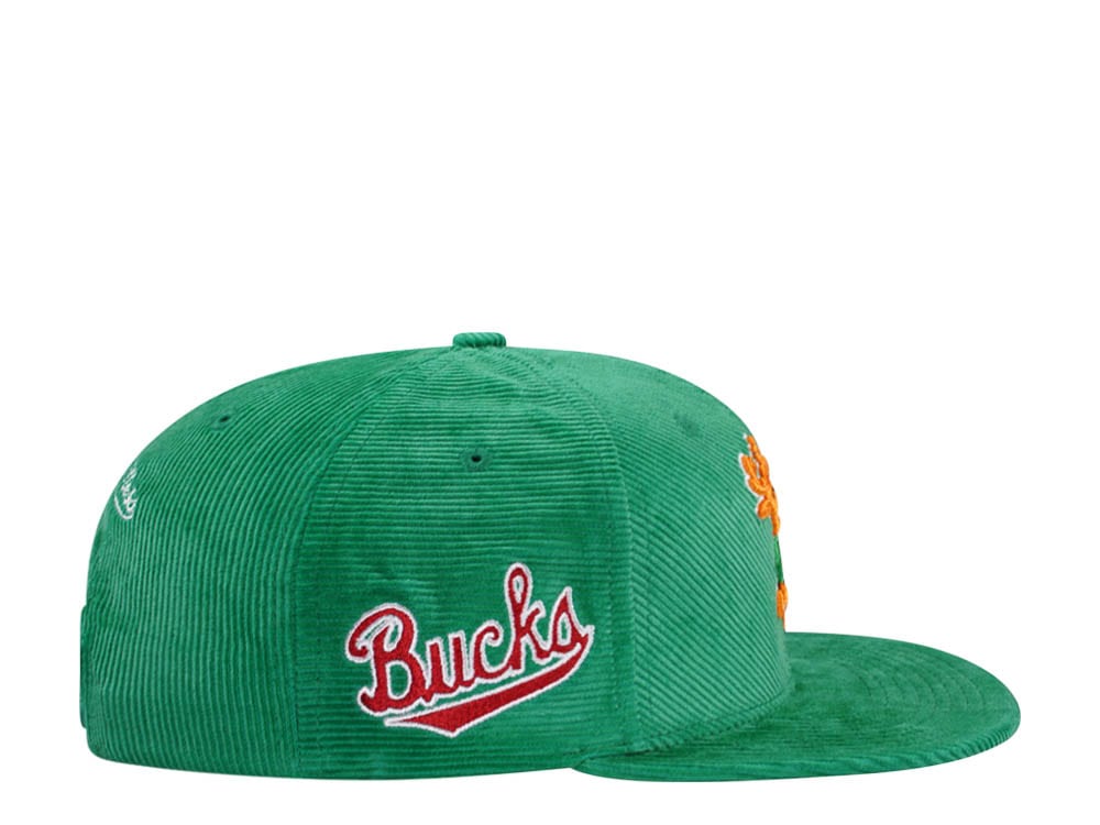 Mitchell & Ness Milwaukee Bucks Green Cord Hardwood Classic Snapback Cap