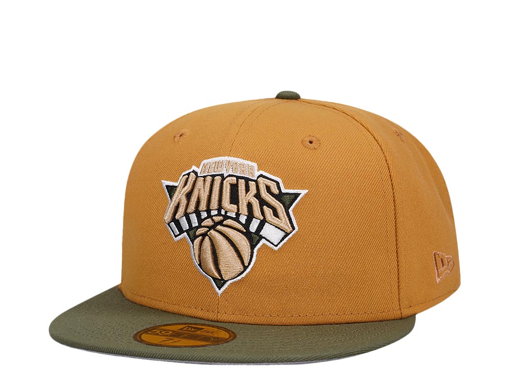 New Era New York Knicks Panama Tan Olive Two Tone Classic Edition 59Fifty Fitted Cap