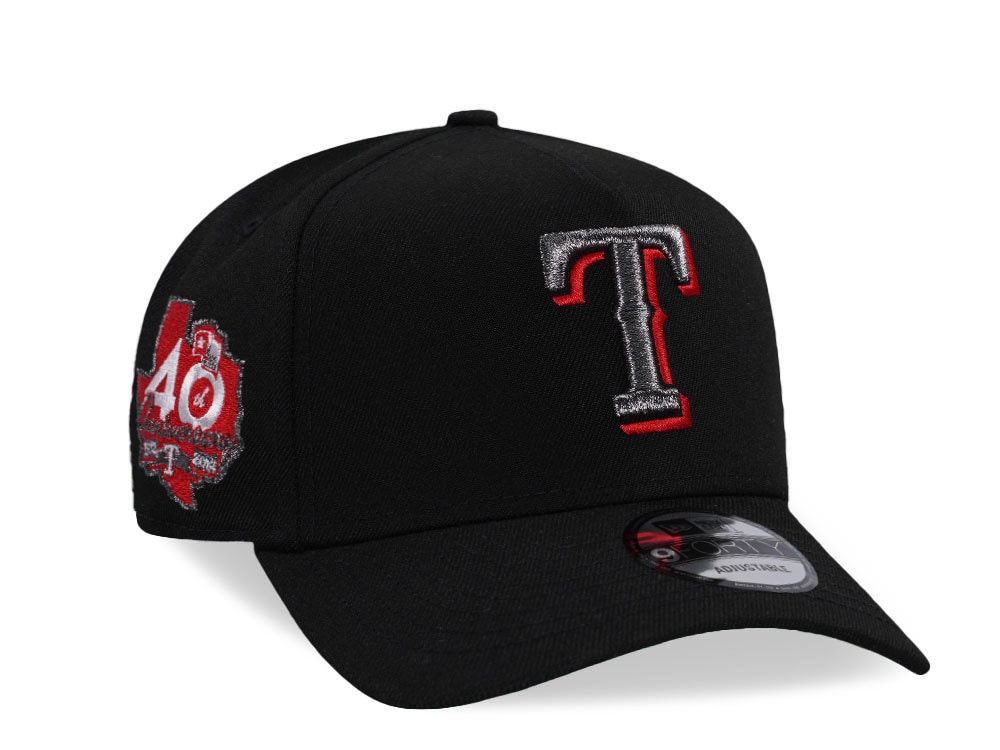 New Era Texas Rangers 40th Anniversary Black Liquid Metal Edition 9Forty A Frame Snapback Cap