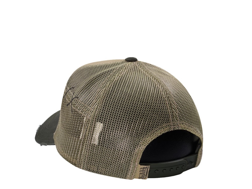 Von Dutch Oval Patch Beige Olive Trucker Snapback Cap