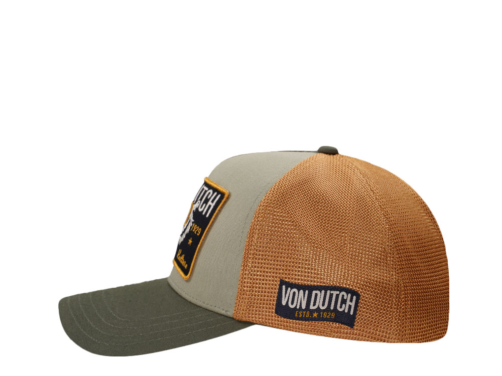 Von Dutch Square Patch Dark Green Yellow Trucker Snapback Cap