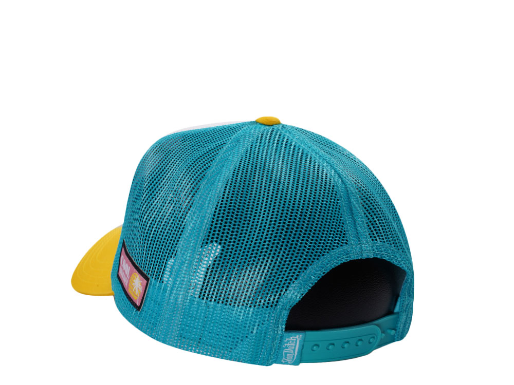 Von Dutch Surf Screen Print Teal Yellow Trucker Snapback Cap